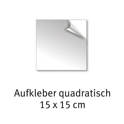 Aufkleber quadratisch 15 x 15 cm Outdoor. Digitaldruckaufkleber gedruckt auf wetterfeste und langhaltbare PVC Folie, speziell für den Außenbereich. Gedruckt aus Ihrer Datei mit einer Gesamtfläche von 15 x 15 cm im Durchmesser. Ideal als Autoaufkleber, Vereinsaufkleber, Bandaufkleber, Wegweiser, Produktaufkleber, Notebookaufkleber, Maschinenaufkleber ...