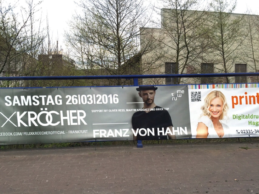 Brückenbanner - PVC-Werbebanner 600 x 70 cm. 4-farbig einseitig mit Ihren Daten bedruckt. Auf 650 g/qm lichtundurchlässige PVC-Plane. Fotoqualität in 1200 dpi. Kantenverstärkt, alle 50 cm geöst und mit zusätzlichen Sicherheitsgurtschlaufen an den Ecken. Das Banner ist lichtundurchlässig. Somit sieht man Ihre Werbung auch gut bei starker Sonneneinstrahlung.