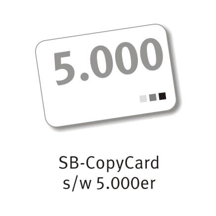 Sie erhalten 5.000 DIN A4 schwarz/weiß Kopien im Abo. Sie kaufen jetzt zum Vorzugspreis die Abocard und können günstig kopieren wann und wieviel Sie möchten. Schwarz/weiß Kopie oder Druck mit Rand auf 80 g/qm Papier. Preis je Kopie - 0,0378 Euro. Im Preis sind die Datenhandlingskosten für den Druck aus sechs Dateien vorhanden. Zwei A4-Kopien entsprechen einer A3-Kopie.