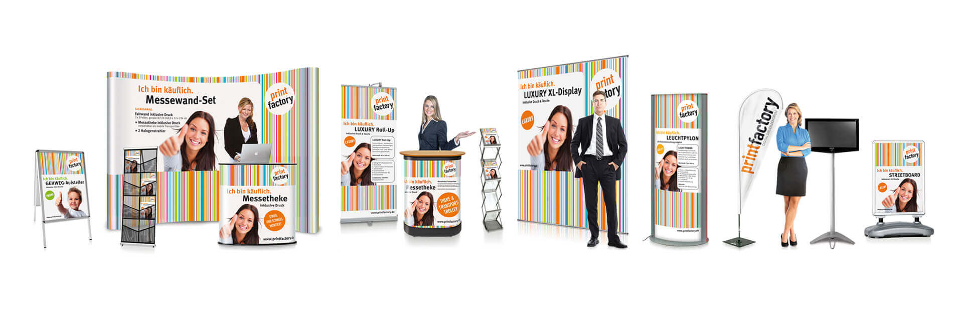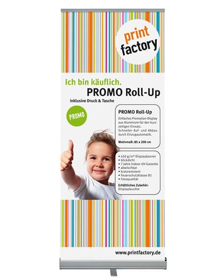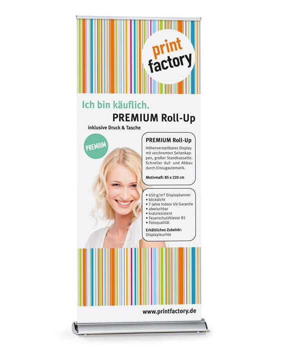 Die printfactory Roll-Up Displays ist der hochwertige Standard auf dem Roll-Up Displaymarkt für jedes Budget und für jeden Geschmack. Geben Sie sich nicht mit weniger zufrieden. Hochwertige umweltfreundliche Qualität zum Top-Preis. Bestellen Sie einfach online ihren Roll-Up Display Favoriten für ihr Event oder ihren Messeauftritt hier in unserem Onlineshop.