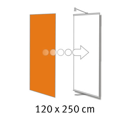 Roll-up Display Nachdruck in 120 x 250 cm für alle gängigen Roll-up Systeme. Sie können verschiedene Motive zum Staffelpreis nachdrucken lassen. Erhältlich als Displayfilm, Displayfilm laminiert, Displaybanner und Displaystoff. Senden Sie uns ihre Roll-UP-Display Kasetten zu und wir bauen Ihnen den Druck gegen eine geringe Gebühr in ihr altes System ein.