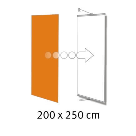 Roll-up Display Nachdruck in 200 x 250 cm für alle gängigen Roll-up Systeme. Sie können verschiedene Motive zum Staffelpreis nachdrucken lassen. Erhältlich als Displayfilm, Displayfilm laminiert, Displaybanner und Displaystoff. Senden Sie uns ihre Roll-UP-Display Kasetten zu und wir bauen Ihnen den Druck gegen eine geringe Gebühr in ihr altes System ein.