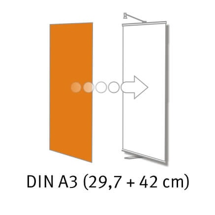 Roll-up Display Nachdruck DIN A3 für alle gängigen Roll-up Systeme. Sie können verschiedene Motive zum Staffelpreis nachdrucken lassen. Erhältlich als Displayfilm. Senden Sie uns ihre Roll-UP-Display Kasetten zu und wir bauen Ihnen den Druck gegen eine geringe Gebühr in ihr altes System ein.