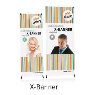 X-Banner Premium Display bedrucken lassen - Messedisplays X Bannerdruck Ein zeitloser und preiswerter Klassiker. Schneller und werkzeugloser Auf- und Abbau macht das X-Banner Display zum idealen Werbeträger auf Messen und Veranstaltungen. Motivwechsel kann in weniger als eine Minute durchgeführt werden. Das printfactory X-Banner Material ist verwindungsarm und die Seiten des X-Banners bleiben glatt. Ideal um ihre Werbebotschaft in Szene zu setzen. Das X-Banner ist erhältlich in 4 Größen. X-Banner bedrucken lassen - Messedisplays X Bannerdruck