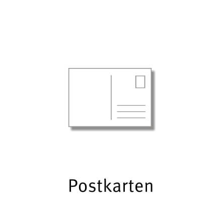 Postkarten, 4/1-farbig beidseitig im Offset bedruckt, Vorderseite 4-farbig vollflächig DIN A6 (bitte mit 3 mm Anschnitt anlegen!) Rückseite 1-farbig Schwarz, auf 300 g/qm Karton. Vorderseite mit glänzendem UV-Lack überzogen. Menge 2.500 Stück.