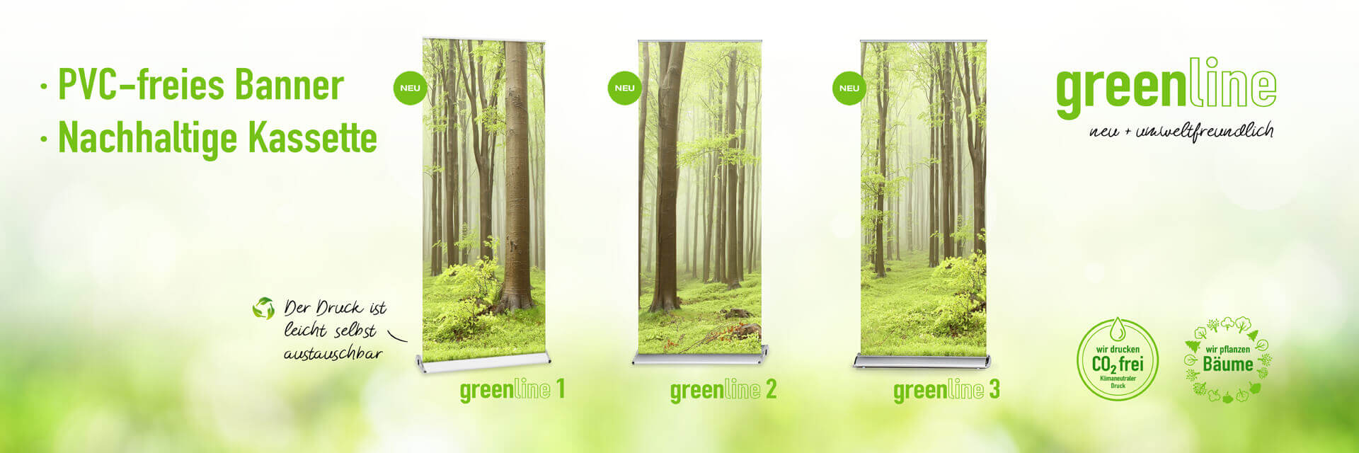 Unter der Serie Greenline finden Sie nachhaltige Recycelbare oder recycelte Druck-Medien. Die Banner sind PVC frei. Diese können Sie bedenkenlos dem Recyclingkreislauf nach Verwendung wieder zuführen. Weitere Produkte folgen. Nachhaltige Druckprodukte bestellen.