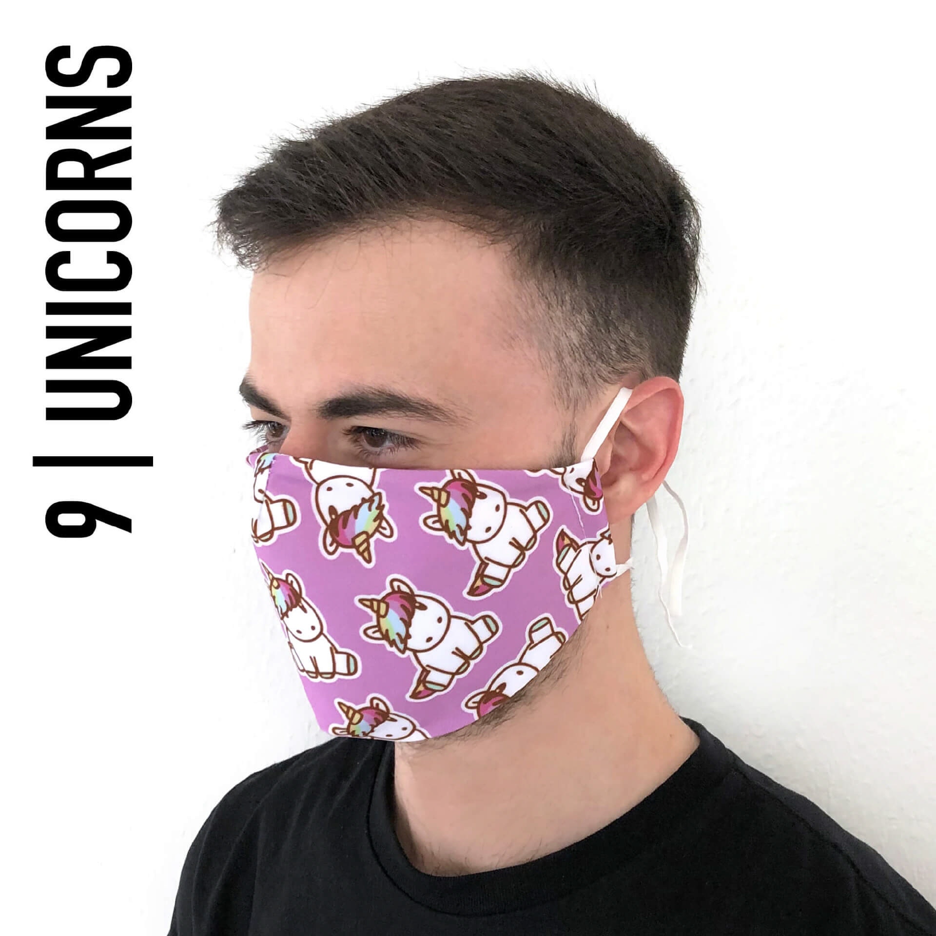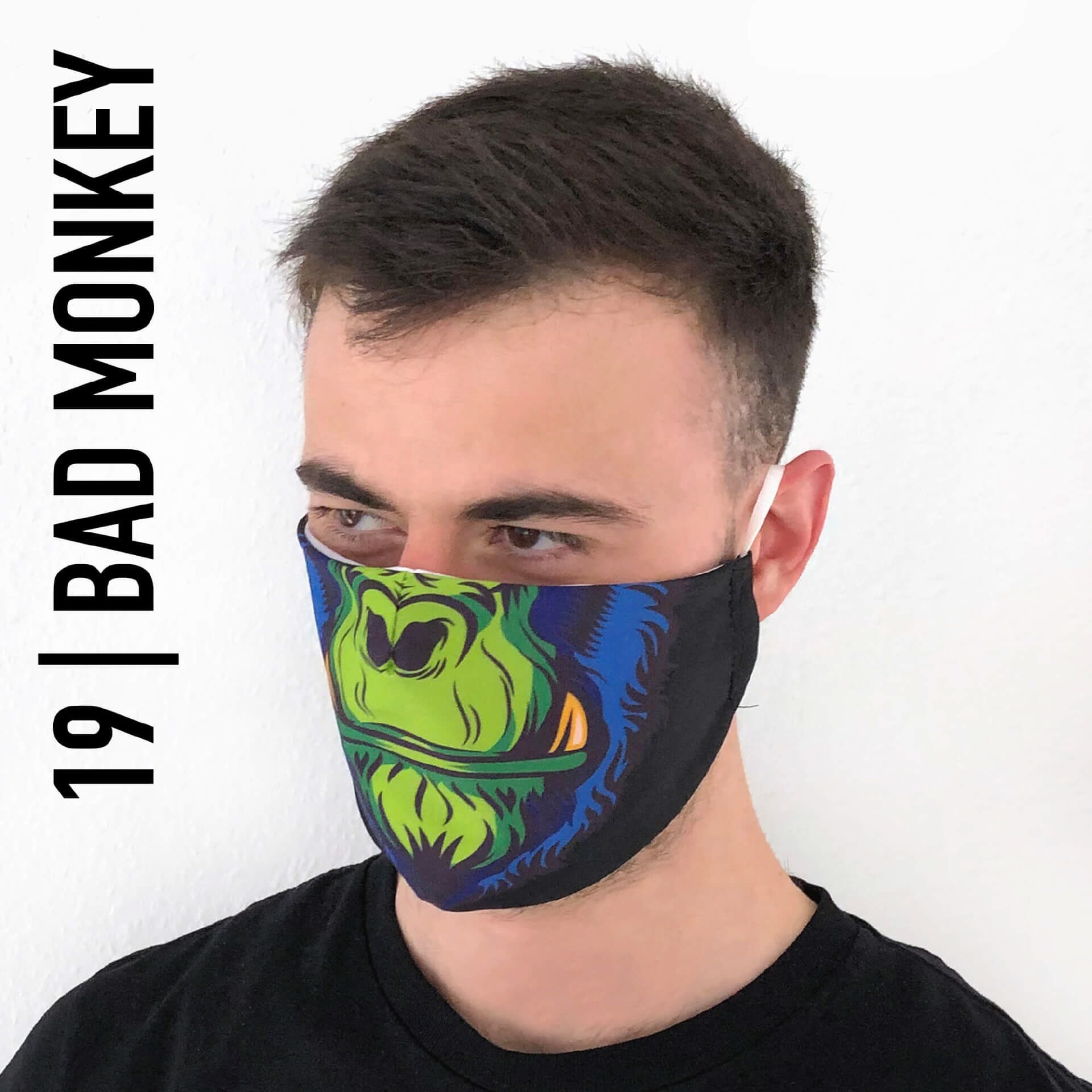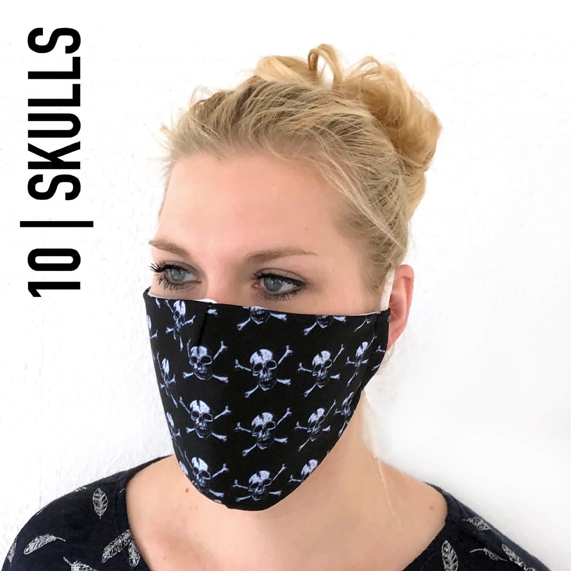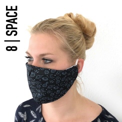 Mehrfach verwendbare Behelfsmaske aus wachbarem Soft-Knit Polyesterstoff, zweilagig. Motiv nach Muster siehe unten. Gute Passform. Professionelle Fertigung. Hohe Qualität. Extrem hohe Tragequalität durch verstellbare Bänder. Keine Druckstellen, da ohne Gummibänder gefertigt. Hohlsaum an den Seiten für Bandwechsel. Bei 60Grad waschbar. Produktion findet bei uns im Hause statt. Wir fertigen ca. 400 Masken täglich. Die von uns angebotenen Behelfsmasken sind keine medizinischen Produkte. Stoff und Druck - Made in Germany - Wählen Sie aus unseren Motiven. Aufgrund der hohen Nachfrage kann es zu Lieferverspätungen kommen. Rufen Sie uns an. 02331-340800
