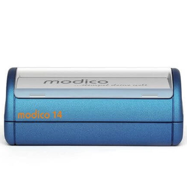 Modico M14 selbstfärbe Stempel. Gehäusefarbe bitte auswählen. Die Abdruckfläche des Stempels ist 98 mm x 69 mm. Der Modico M14 Stempel bietet Platz für ca. 10 - 12 Zeilen Text und Logo. Gehäusegröße: 133 mm x 103 mm x 56 mm. Die Stempelplatte ist für feinste Schriften und Linien geeignet. Selbst Fotos können Detailgetreu wiedergegeben werden. Flächen erscheinen gleichmäßig und hochwertig.