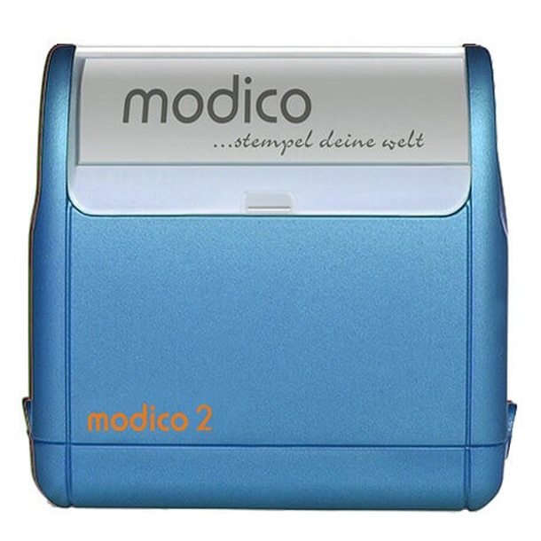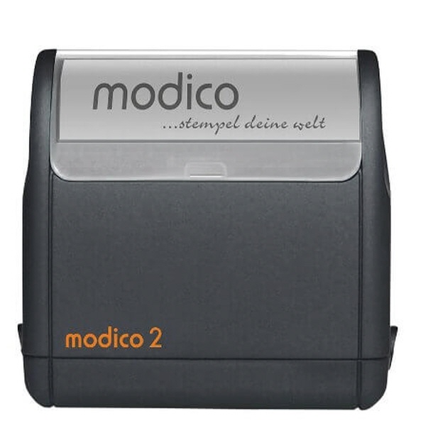 Modico M2 selbstfärbe Stempel. Gehäusefarbe bitte auswählen. Die Abdruckfläche des Stempels ist 37 mm x 11 mm. Der Modico 2 Stempel bietet Platz für ca. 3 Zeilen Text und Logo. Gehäusegröße: 57 mm x 29 mm x 54 mm. Die Stempelplatte ist für feinste Schriften und Linien geeignet. Selbst Fotos können Detailgetreu wiedergegeben werden. Flächen erscheinen gleichmäßig und hochwertig.
