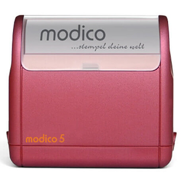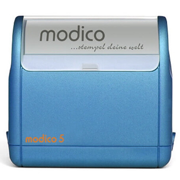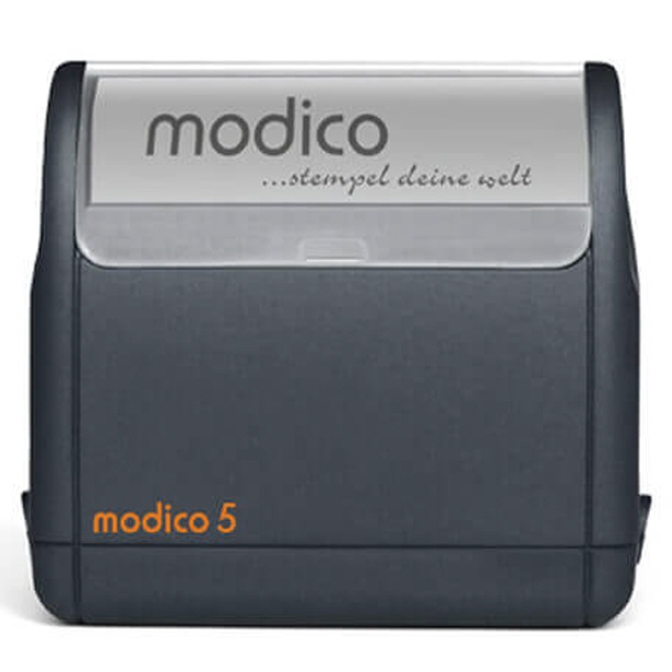 Modico M5 selbstfärbe Stempel. Gehäusefarbe bitte auswählen. Die Abdruckfläche des Stempels ist 63 mm x 24 mm. Der Modico M5 Stempel bietet Platz für ca. 6 Zeilen Text und Logo. Gehäusegröße: 85 mm x 42 mm x 78 mm. Die Stempelplatte ist für feinste Schriften und Linien geeignet. Selbst Fotos können Detailgetreu wiedergegeben werden. Flächen erscheinen gleichmäßig und hochwertig.