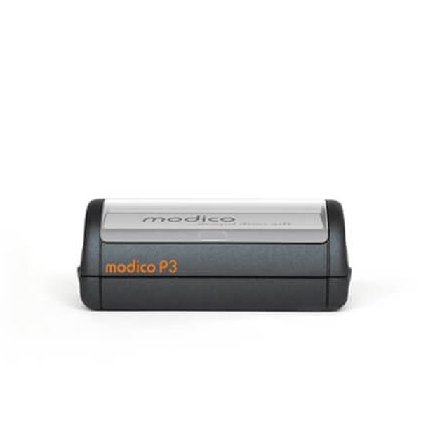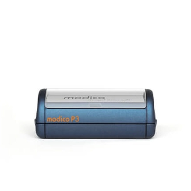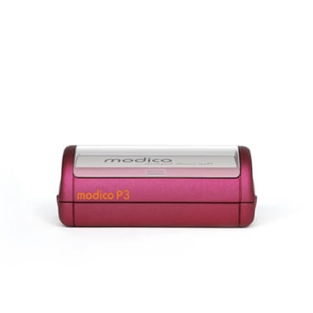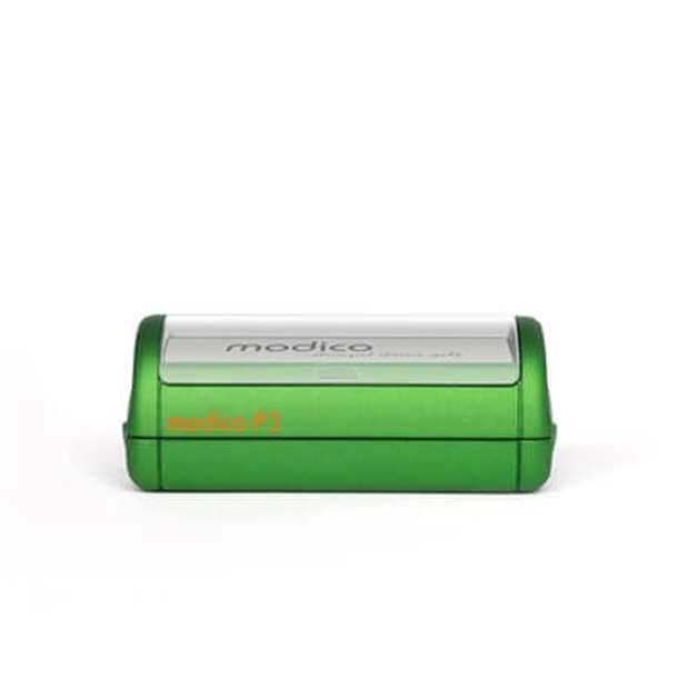 Modico P3 selbstfärbe Taschen Stempel. Gehäusefarbe bitte auswählen. Die Abdruckfläche des Stempels ist 49 mm x 15 mm. Der Modico P3 Stempel bietet Platz für ca. 4 Zeilen Text und Logo. Gehäusegröße: 65 mm x 33 mm x 25 mm. Die Stempelplatte ist für feinste Schriften und Linien geeignet. Selbst Fotos können Detailgetreu wiedergegeben werden. Flächen erscheinen gleichmäßig und hochwertig.