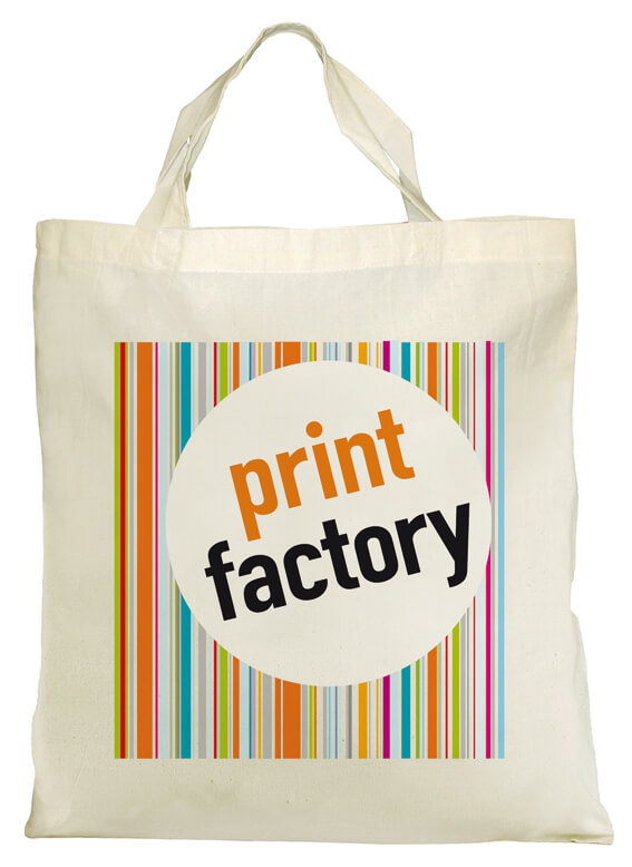 Baumwolltasche natur, kurze Henkel inkl. Druck DIN A4 einseitig oder beidseitig.