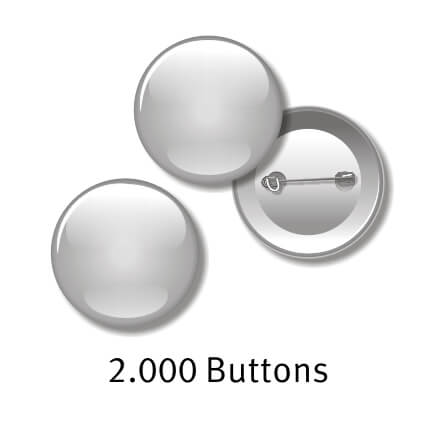 Buttons 55 mm mit Nadel und mit ihrem Motiv bedruckt. Button sind eine der ältesten Werbeformen. Mit den printfactory-Nadel-Button machen Sie immer eine gute Figur und hinterlassen einen bleibenden Eindruck. Hier erhalten Sie 2000 Stück.