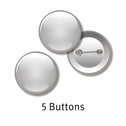 Buttons 55 mm mit Nadel und mit ihrem Motiv bedruckt. Button sind eine der ältesten Werbeformen. Mit den printfactory-Nadel-Button machen Sie immer eine gute Figur und hinterlassen einen bleibenden Eindruck. Hier erhalten Sie 5 Stück.
