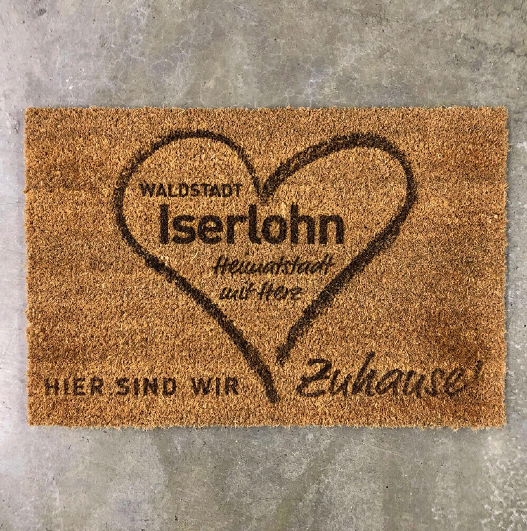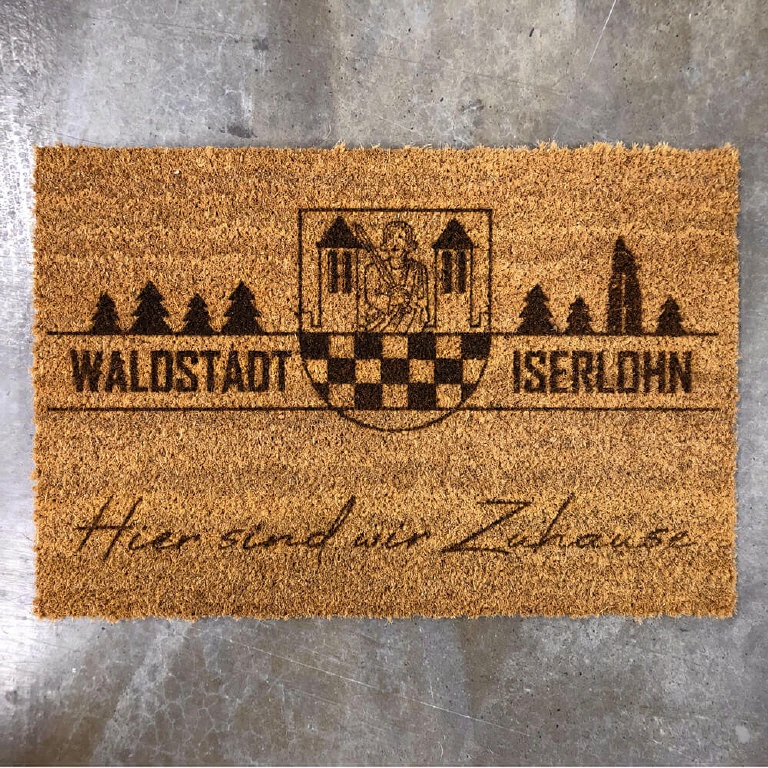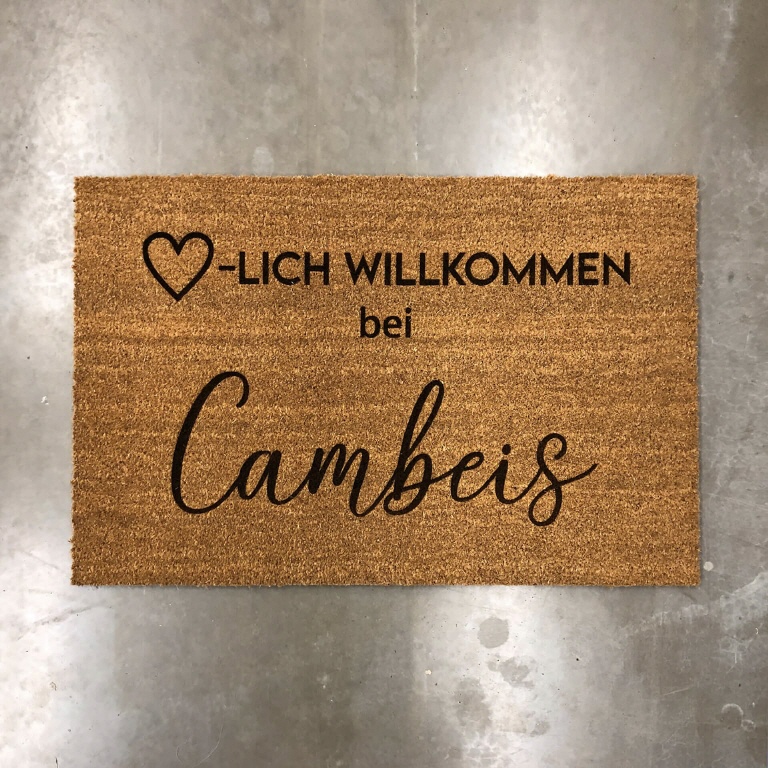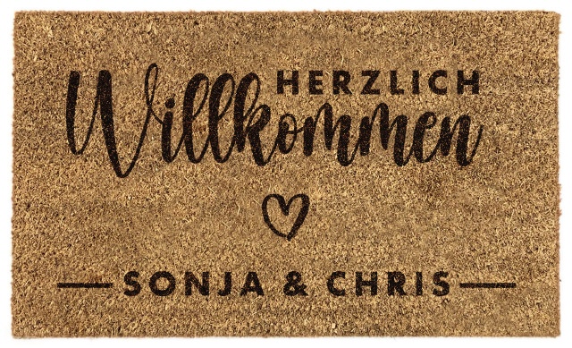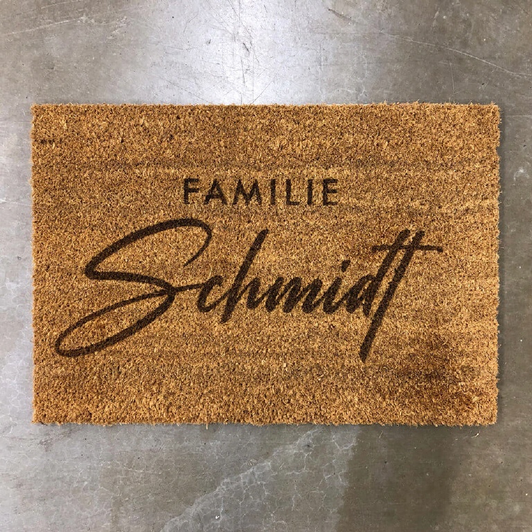 Personalisierte Fußmatte aus Kokos 70 x 40 cm gelasert und mit eigenem Foto oder magischem Wunschnamen selbst gestalten. Kokos Fußmatte persoanlisiert.