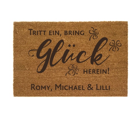 Personalisierte Fußmatten mit Ihrem Schriftzug, Spruch oder Logo belasert. Fußmatten aus Kokos individuell laser graviert nachhaltig. Fußmatten mit Namen/Logo belasern & bedrucken. Fußmatten personalisiert. Nachhaltige Fußmatten.