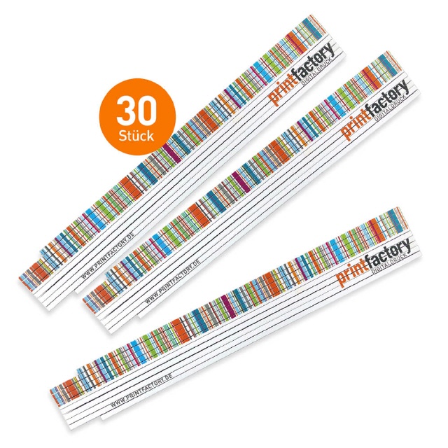 30 Bedruckte Werbe-Zollstöcke, mit Ihrer Werbung versehen, hinterlassen zu jeder Zeit einen guten Eindruck und werden Jahre lang bei Ihrem Kunden in gebrauch sein. Damit wird Ihr Kunde Sie und Ihre Arbeit immer in guter Erinnerung behalten. Und wenn es klemmt, weiß er ja wo Ihre Zollstock-Visitenkarte zu finden ist.